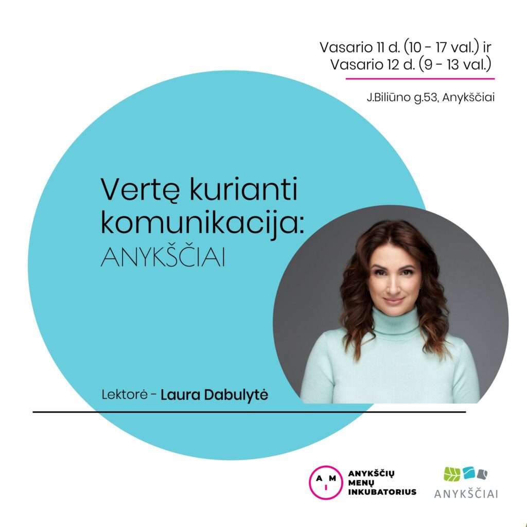 Kviečiame į vienos žinomiausių komunikacijos profesionalių Lietuvoje Lauros DABULYTĖS dviejų dienų mokymus.